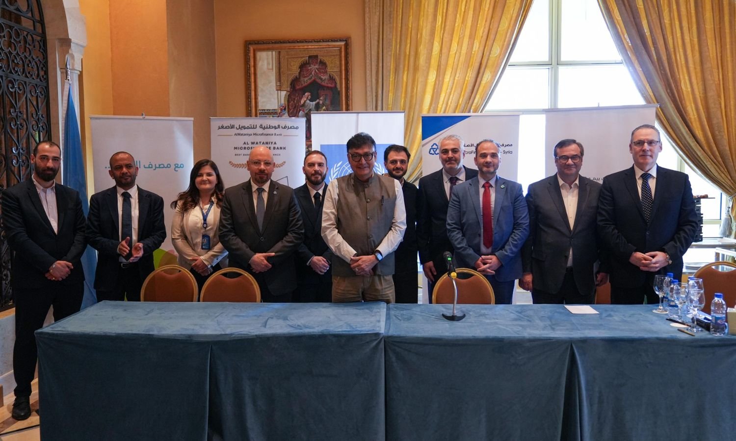 ممثلون عن أربعة بنوك سورية إلى جانب الأمين العام المساعد للأمم المتحدة ومدير برنامج الأمم المتحدة الإنمائي في الدول العربية